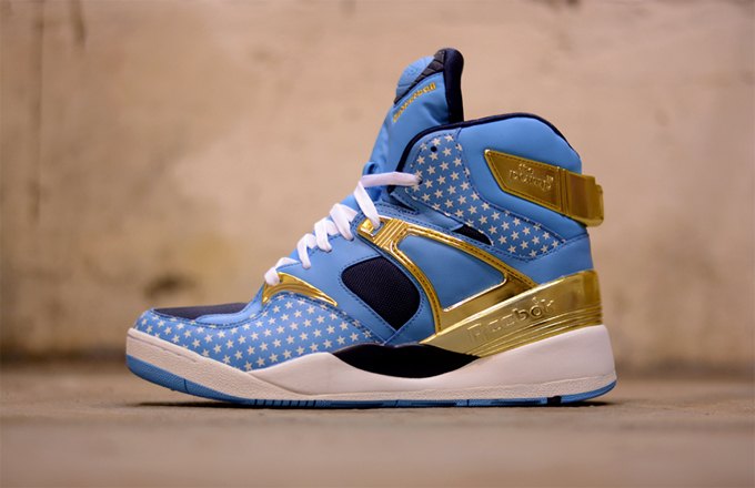 Major just went all the way in on its Reebok collaboration. After seeing previews the last couple of weeks, we now have a detailed look at the DC-based shop's Pump 25 sneaker.Appropriately nicknamed "The Home of the Brave," the collaborative effort, which celebrates the O.G. Pump's 25th anniversary, features blue leather panels with navy underlays constructed of mesh. Shiny gold accents and contrasting star graphics in white add some pop to the predominantly blue upper. There's Major branding on the heel counter and tongue and, of course, Reebok's signature Pump in that unmistakable basketball mold.